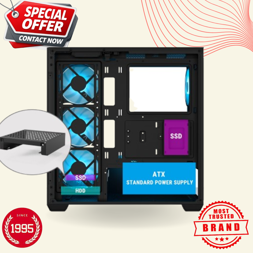 This cabinet is designed for gamers who never compromise on performance. Keep your CPU and GPU cool while enjoying uninterrupted gaming.