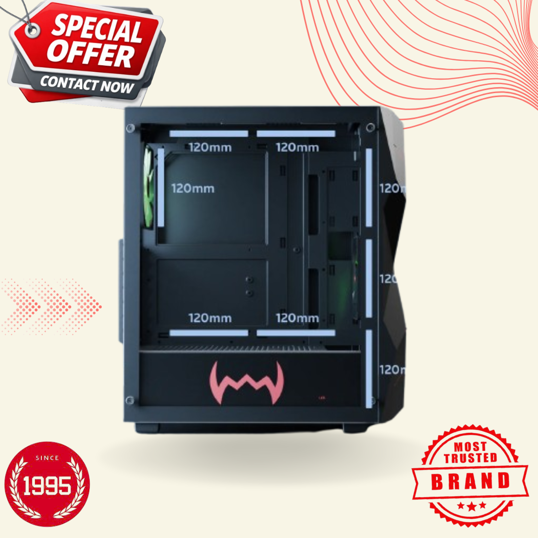 It ensures efficient cooling, keeping the system’s temperature under control—even during extended gaming sessions. Its internal layout is designed to facilitate smooth airflow among all components, thereby enhancing overall performance and extending the system’s lifespan. This cabinet is ideal for users who prioritise thermal efficiency when building their systems.