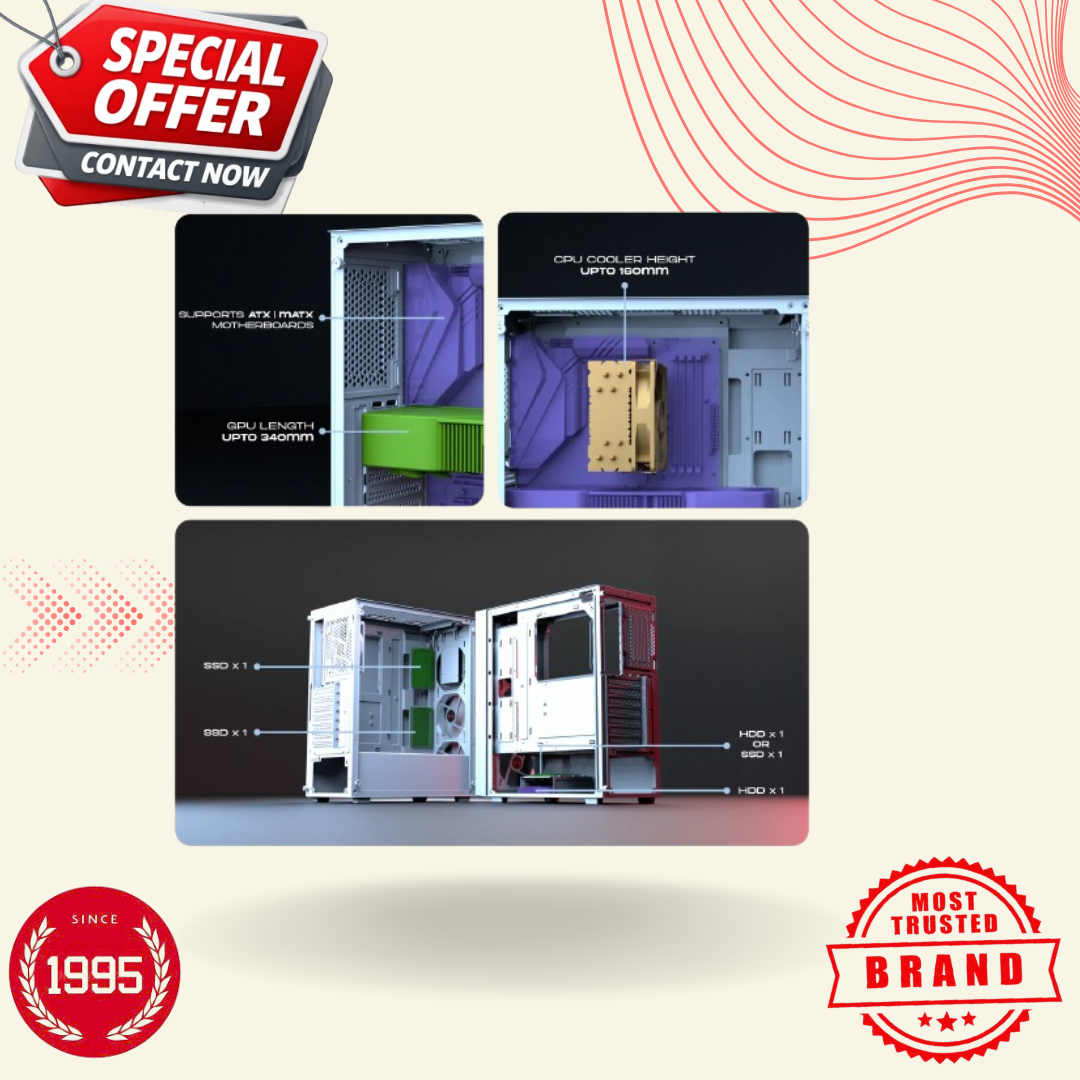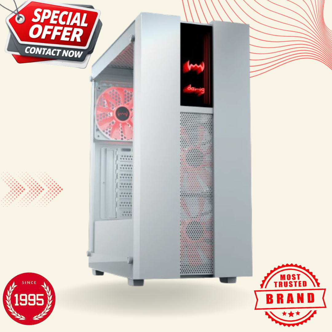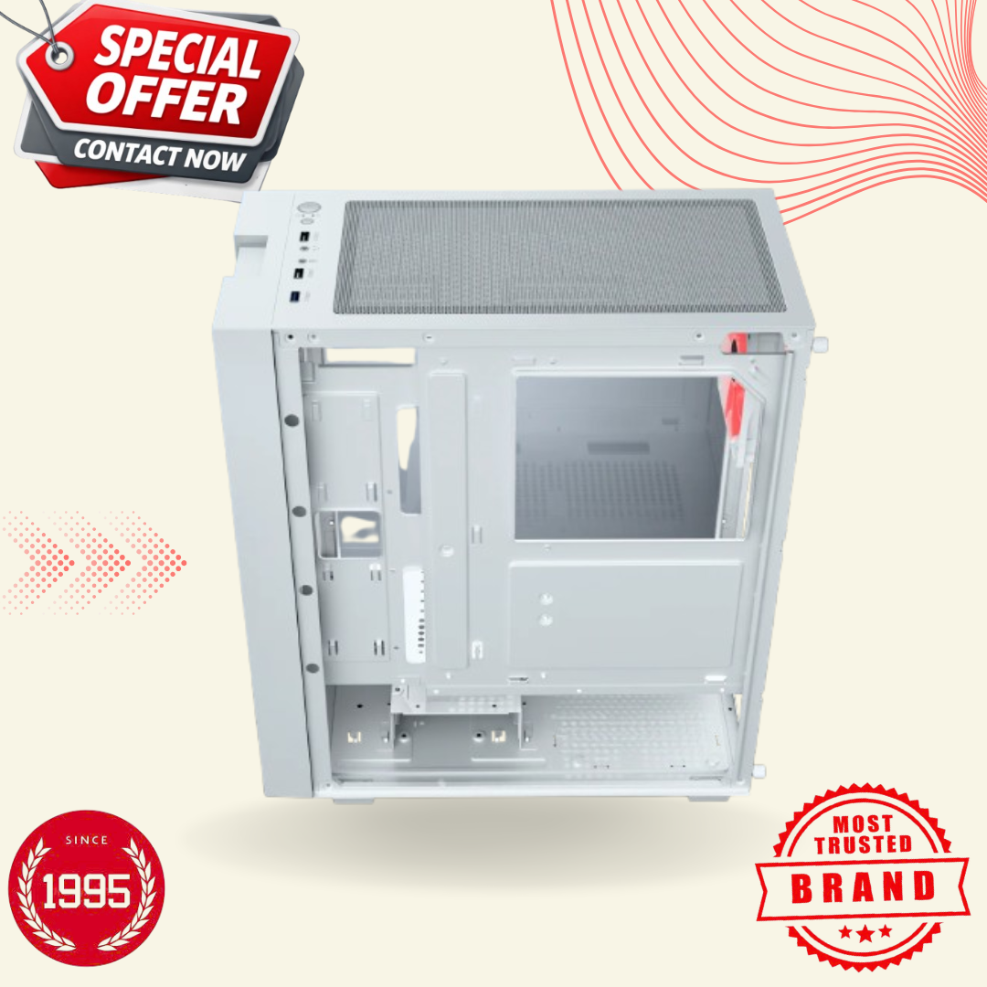 Are you looking for a stylish and high-performance PC cabinet? If so, your search ends here. The Dawg V350 White M-ATX Mid Tower case is designed for modern gamers and PC enthusiasts who demand both aesthetics and performance. Featuring a stunning finish and a smart internal layout, this compact case offers excellent cooling capabilities and facilitates easy PC assembly.