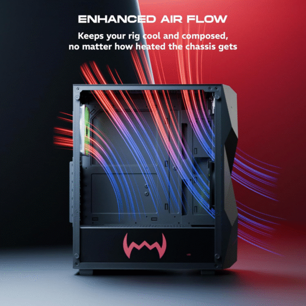 daWg V Series 240 Mid-Tower Gaming Cabinet (Black) – 2 Multicolor Fans, Tempered Glass